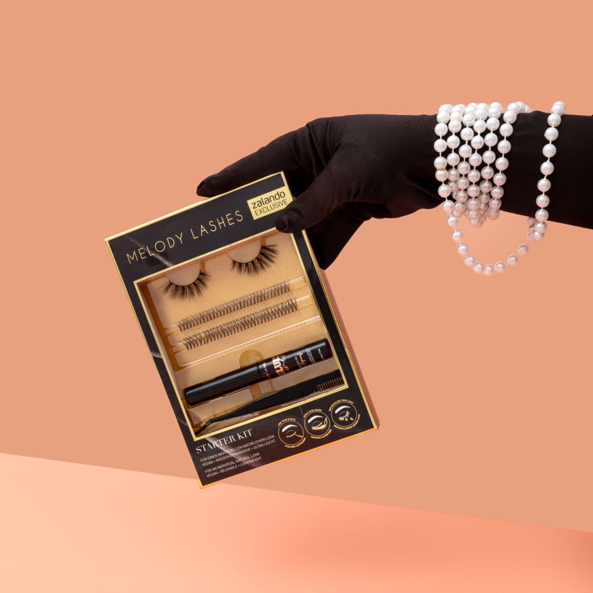 Das Melody Lashes x Zalando Starter Kit enthält natürliche half cut Wimpern mit einzelnen Wimpern, um einen individuellen Look kreieren zu können. Im Set enthalten ist ebenfalls ein Glue Liner für einen leichteren und schnelleren Auftrag der natürlichen Wimpern. Der innovativ gebogenen Applikator sorgt für einen angenehmeren und präzisen Auftrag der Wimpern.